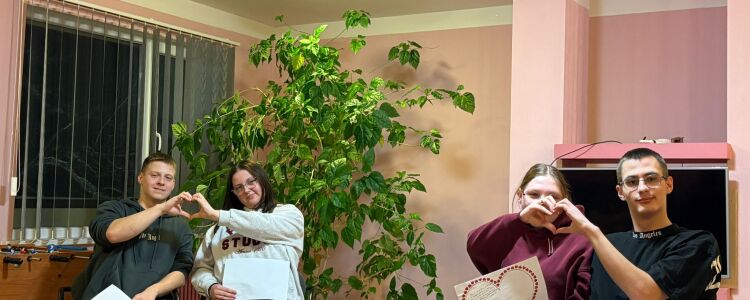 Valentīndienas pasākums “Iepazīsti mani tuvāk” dienesta viesnīcā tika rīkots 11.02. 2026. Pasākumā tika aicināti piedalīties visi dienesta viesnīcā esošie mīlas pārīši, taču atsaucība nebija liela. Pārīšiem bija jāizpilda 6 uzdevumi: