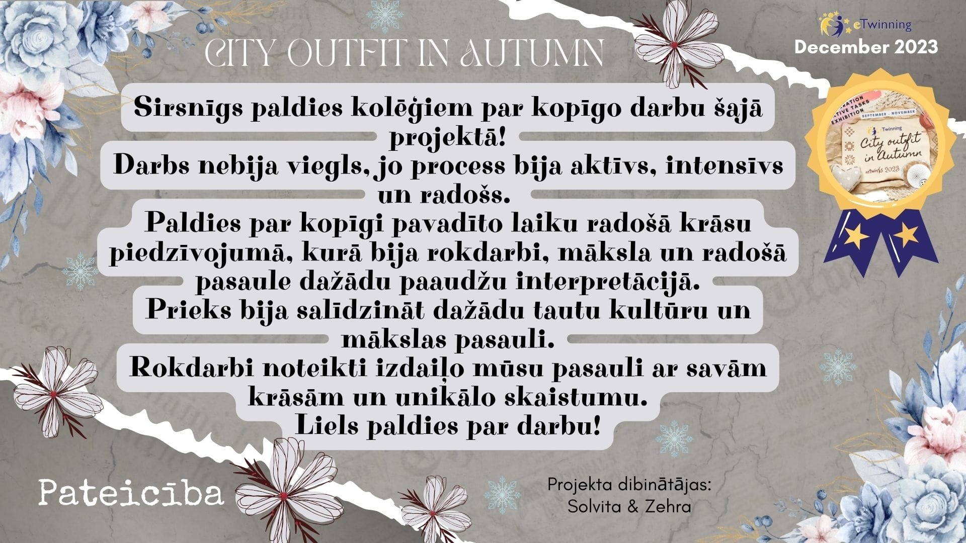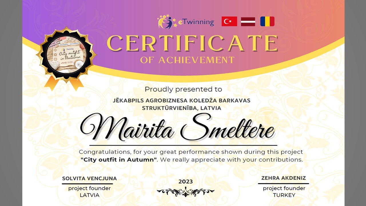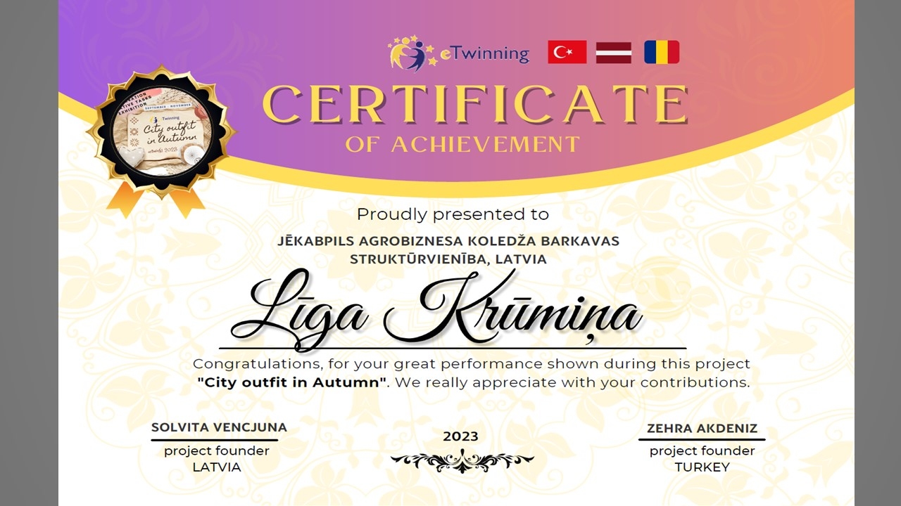 15/12/2023Starptautiskais eTwinning projekts " City outfit in Autumn"